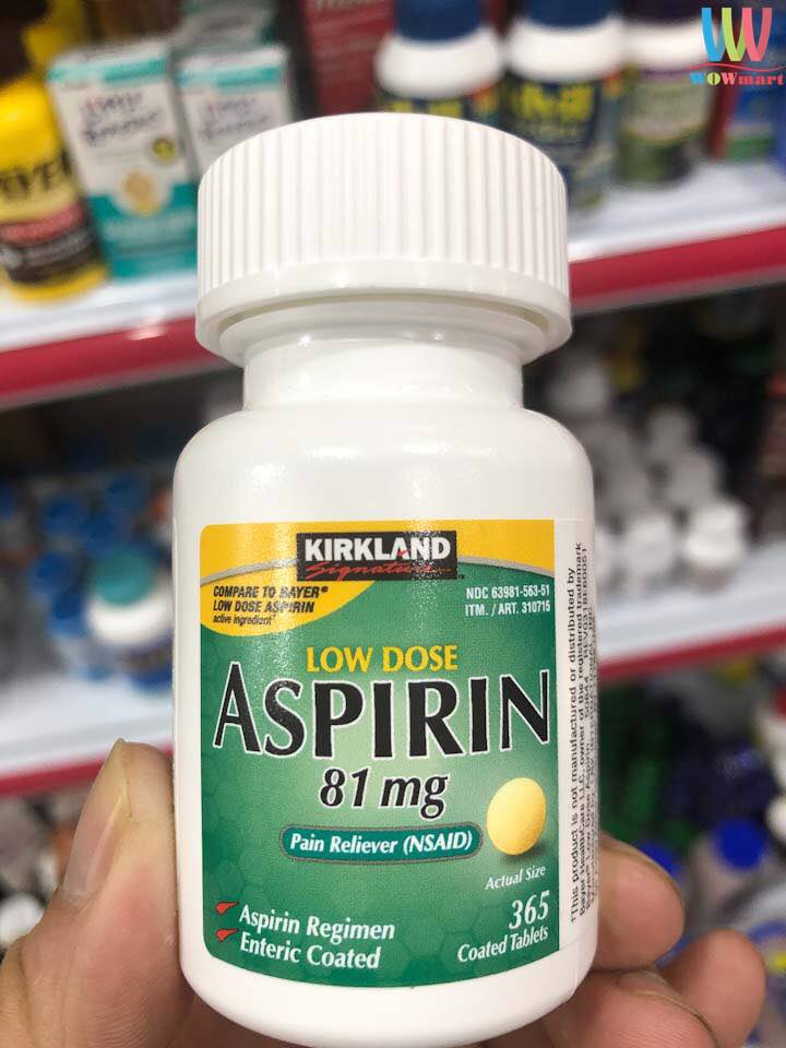 Nếu bạn đang tìm mua Aspirin 81mg của Mỹ, có thể tham khảo sản phẩm Kirkland Signature. Với công dụng giảm đau và hạ sốt, thuốc này rất hữu ích cho các cơn đau nhẹ đến vừa như đau đầu, đau lưng, hay đau bụng kinh. Đồng thời, viên uống này còn hỗ trợ trong việc phòng ngừa nhồi máu cơ tim và đột quỵ.