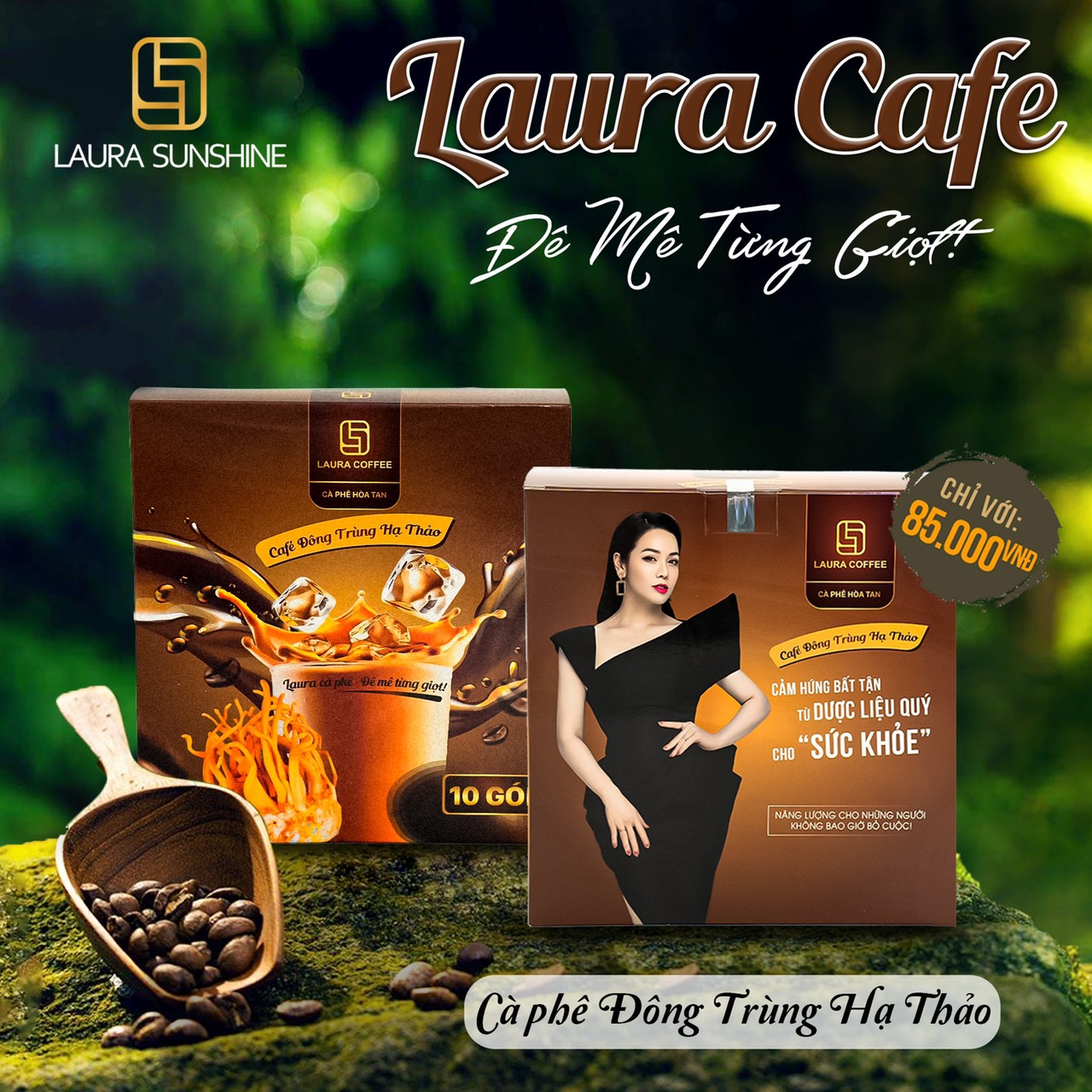 Nếu bạn đang tìm kiếm cà phê Đông Trùng Hạ Thảo, một sản phẩm nổi bật mà bạn không thể bỏ qua là cà phê Laura Sunshine Nhật Kim Anh. Sản phẩm này được đóng gói trong hũ thủy tinh 130gr và có thời hạn sử dụng lên đến 24 tháng. Với 10% Đông Trùng Hạ Thảo nguyên chất và 12% bột cà phê hòa tan, cùng với bột kem, đường và muối, bạn sẽ được trải nghiệm một hương vị thơm ngon đặc trưng.