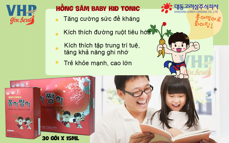 Hồng sâm Baby là sản phẩm ngày càng được các bậc phụ huynh quan tâm, đặc biệt là cho trẻ từ 1 đến 5 tuổi. Sản phẩm này rất thích hợp cho những bé có tình trạng biếng ăn, còi xương hay suy dinh dưỡng. Hồng sâm không chỉ giúp trẻ tập trung hơn mà còn tăng cường trí nhớ và khả năng ghi nhớ.