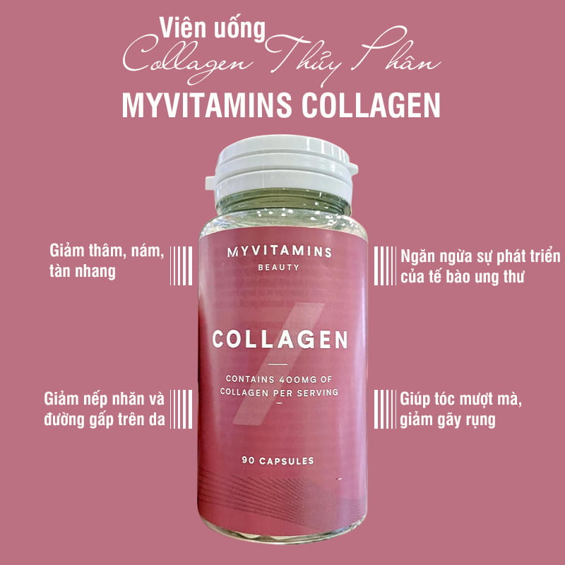 Collagen Myvitamins là sản phẩm đang được rất nhiều chị em yêu thích nhờ vào khả năng bổ sung collagen hiệu quả cho cơ thể. Viên uống collagen thủy phân này giúp nâng cao độ đàn hồi, làm căng mịn và săn chắc cho làn da, đồng thời giảm thiểu nếp nhăn và các dấu hiệu lão hóa. Đặc biệt, với công thức collagen thủy phân, sản phẩm không gây tăng cân như các dạng collagen thông thường.
