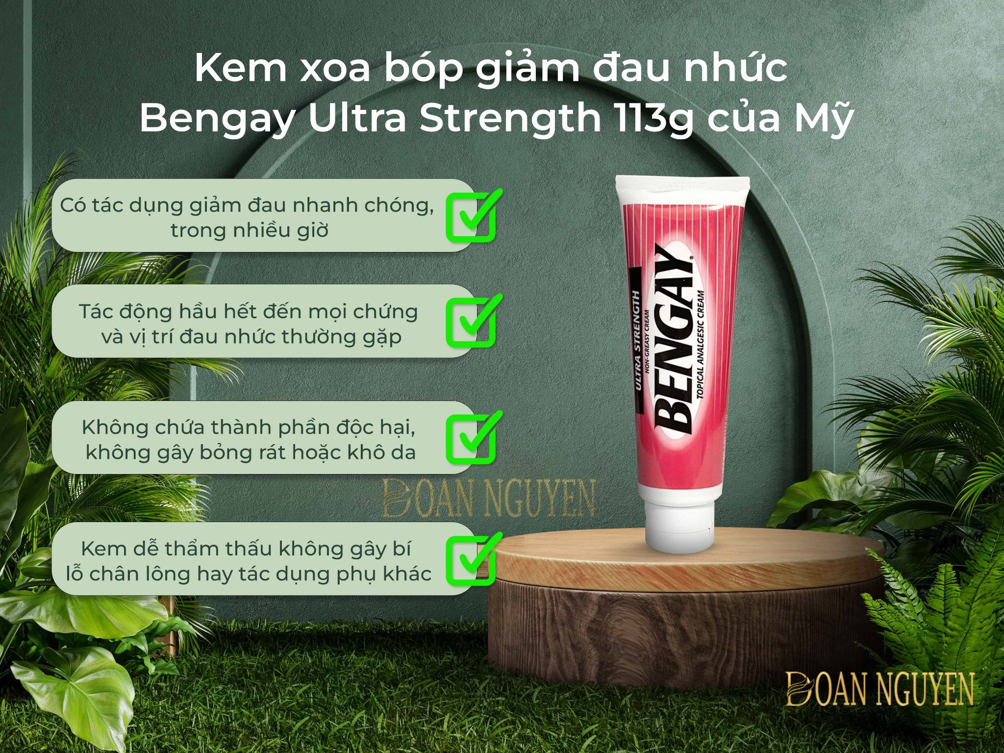 Bengay Ultra Strength là một sản phẩm giảm đau hàng đầu tại Mỹ, giúp thâm nhập sâu vào cơ thể để xoa dịu cơn đau nhức cơ bắp, đau lưng và vai gáy. Với giá chỉ 202.000 ₫ cho một tuýp, đây hẳn là lựa chọn экономического cho những ai thường xuyên bị đau nhức.