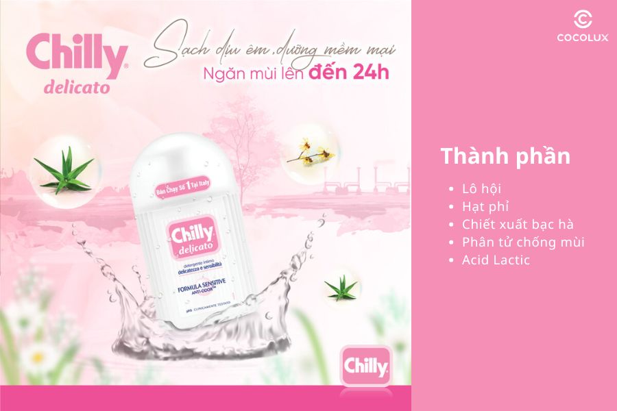 Dung dịch vệ sinh phụ nữ màu hồng không chỉ thu hút bởi hình thức bên ngoài mà còn nhờ vào những thành phần thiên nhiên an toàn cho sức khoẻ. Với chiết xuất từ cúc la mã, cúc thủy xa và lô hội, sản phẩm mang lại cảm giác nhẹ nhàng, dịu mát cho vùng da nhạy cảm. Những thành phần này không chỉ giúp làm sạch mà còn có tác dụng làm dịu, giảm kích ứng hiệu quả.