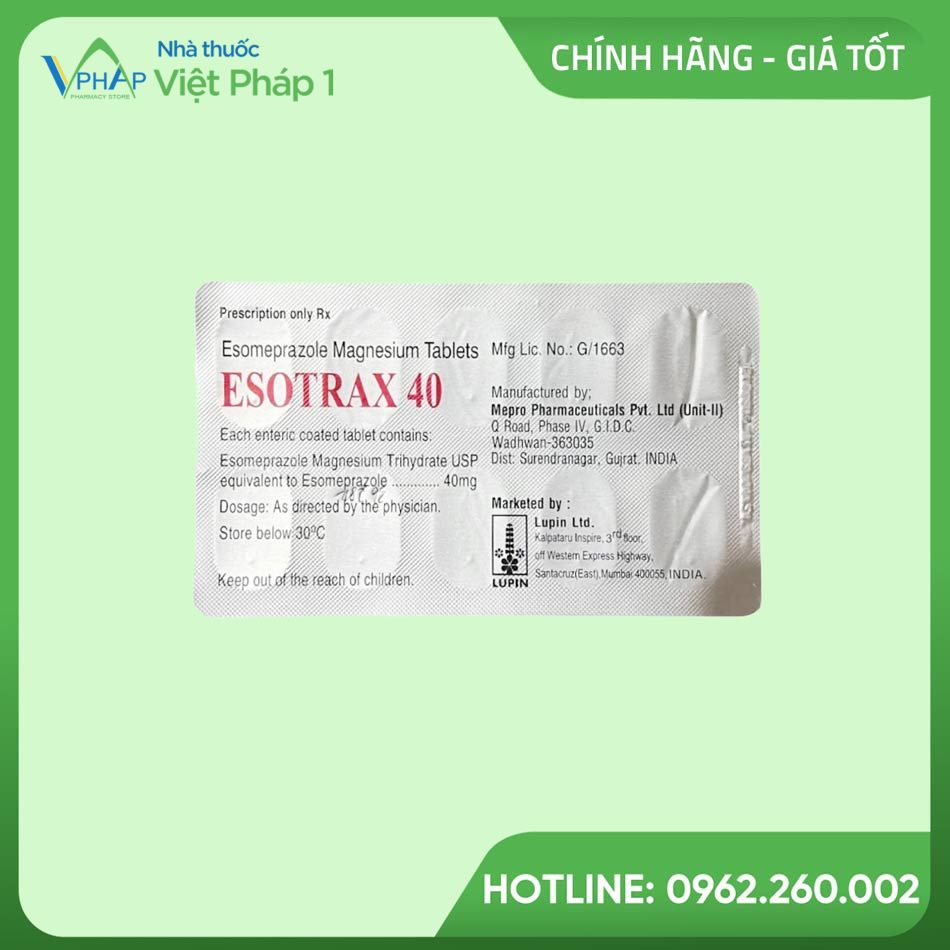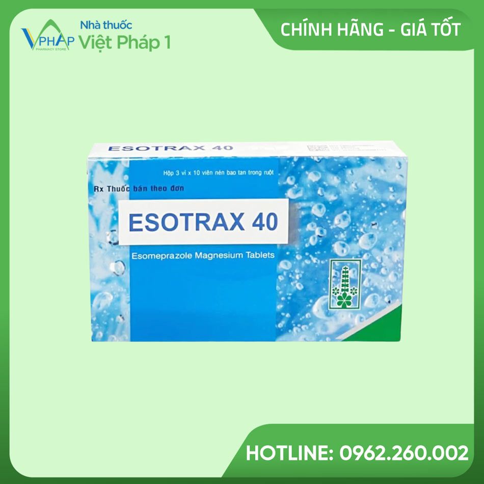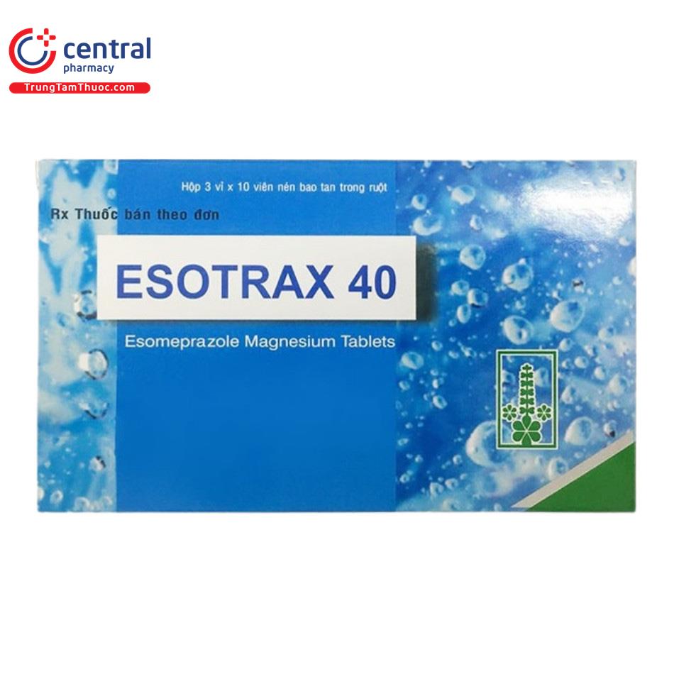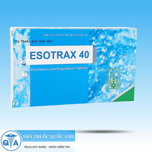 Esotrax 40mg là một loại thuốc phổ biến được sử dụng để điều trị các bệnh lý liên quan đến dạ dày, đặc biệt là bệnh trào ngược dạ dày-thực quản (GERD) và viêm loét dạ dày tá tràng. Sản phẩm này chứa hoạt chất Esomeprazole, giúp làm giảm lượng acid trong dạ dày, từ đó làm giảm triệu chứng và hỗ trợ quá trình chữa lành.