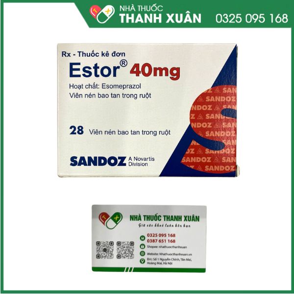 Estor 40mg là một trong những loại thuốc được sử dụng phổ biến trong điều trị các bệnh lý liên quan đến dạ dày, thực quản và một số bệnh lý tiêu hóa khác. Hiện nay, người dùng rất quan tâm đến giá thuốc Estor 40mg, mua Estor 40mg ở đâu uy tín cũng như công dụng, liều dùng và cách sử dụng thuốc hiệu quả, an toàn. Bên cạnh đó, các vấn đề về tác dụng phụ và đánh giá chất lượng của Estor 40mg cũng là những yếu tố được nhiều người quan tâm trước khi quyết định sử dụng. Bài viết dưới đây sẽ tổng hợp đầy đủ những thông tin này để bạn đọc tham khảo và lựa chọn phù hợp.