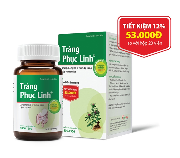 Tràng Phục Linh Plus là một sản phẩm thực phẩm chức năng được bào chế từ các thảo dược thiên nhiên như bạch truật, bạch phục long, hoàng bá và bạch thược. Đặc biệt, sản phẩm này được thiết kế để hỗ trợ những ai đang gặp phải các triệu chứng khó chịu của viêm đại tràng và hội chứng ruột kích thích. Nhiều người sau khi dùng cho biết họ đã cảm nhận được sự cải thiện rõ rệt về các triệu chứng như đau bụng, chướng bụng và đi ngoài nhiều lần.