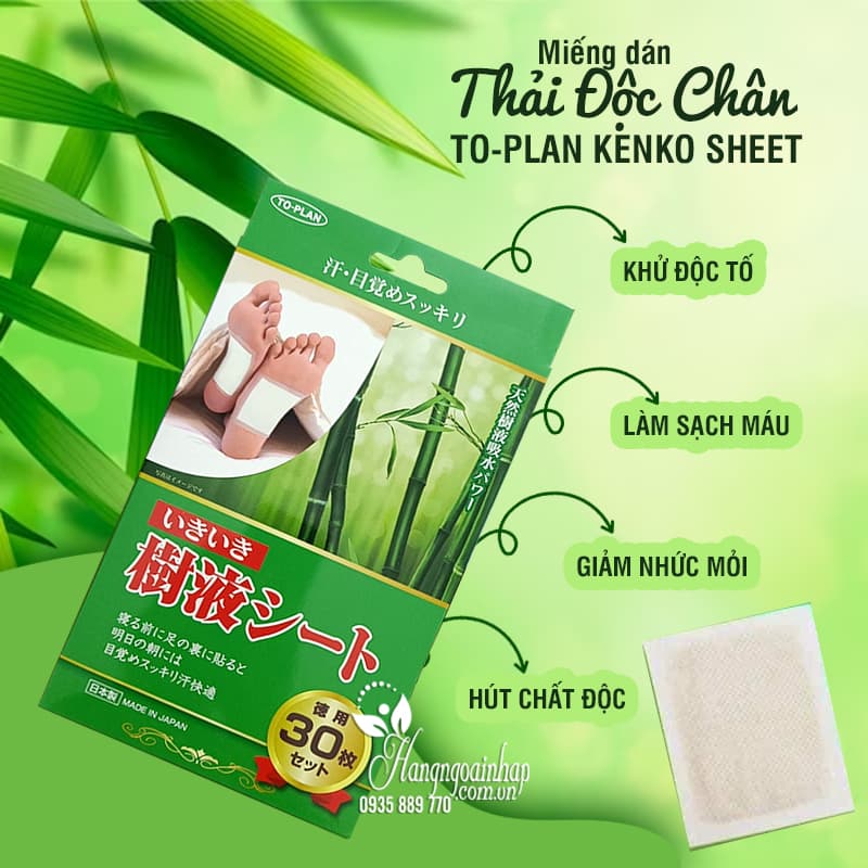Miếng dán thải độc chân Nhật Bản đang ngày càng trở nên phổ biến và được nhiều người lựa chọn. Một trong những sản phẩm nổi bật là miếng dán Kenko, với công dụng chính là thải độc tố và cặn bã ra khỏi cơ thể. Sản phẩm giúp thanh lọc gan, làm sạch máu và tăng cường quá trình chuyển hóa trong cơ thể, đem lại cảm giác dễ chịu và thư giãn.