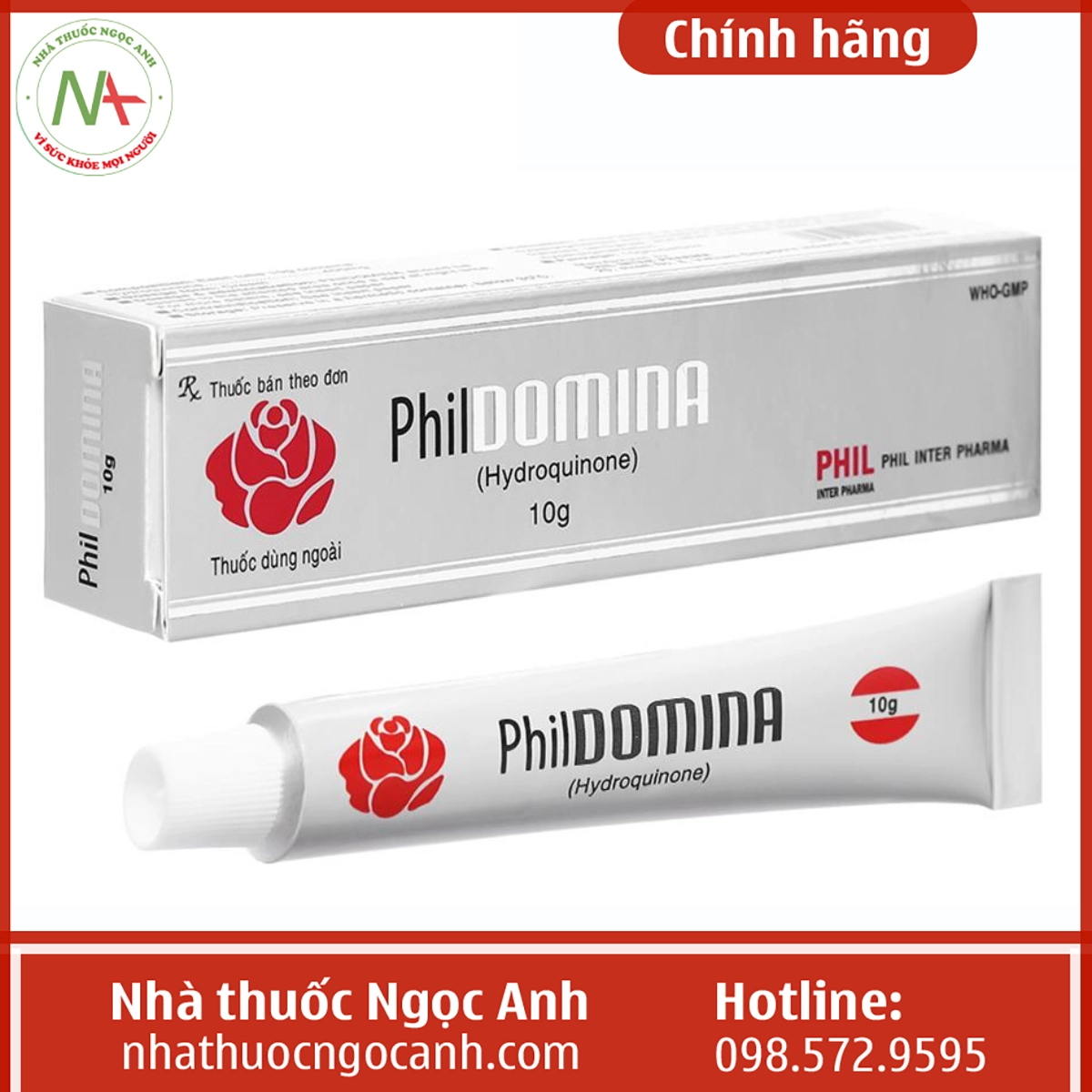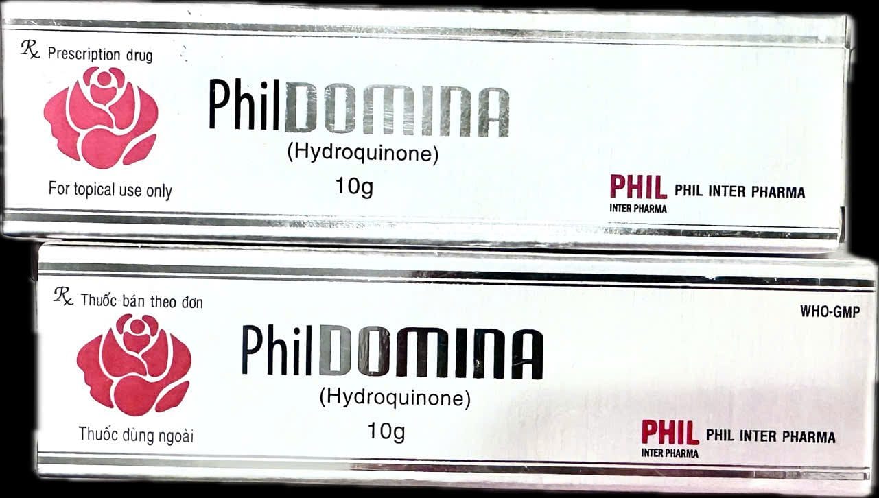 Phil Domina 10G là một sản phẩm nổi bật trong lĩnh vực điều trị tăng sắc tố da, nổi bật với thành phần chính là Hydroquinone. Mỗi tuýp kem bôi ngoài da này chứa 400mg Hydroquinone, đóng vai trò quan trọng trong việc làm giảm tình trạng nám, tàn nhang và sạm da.