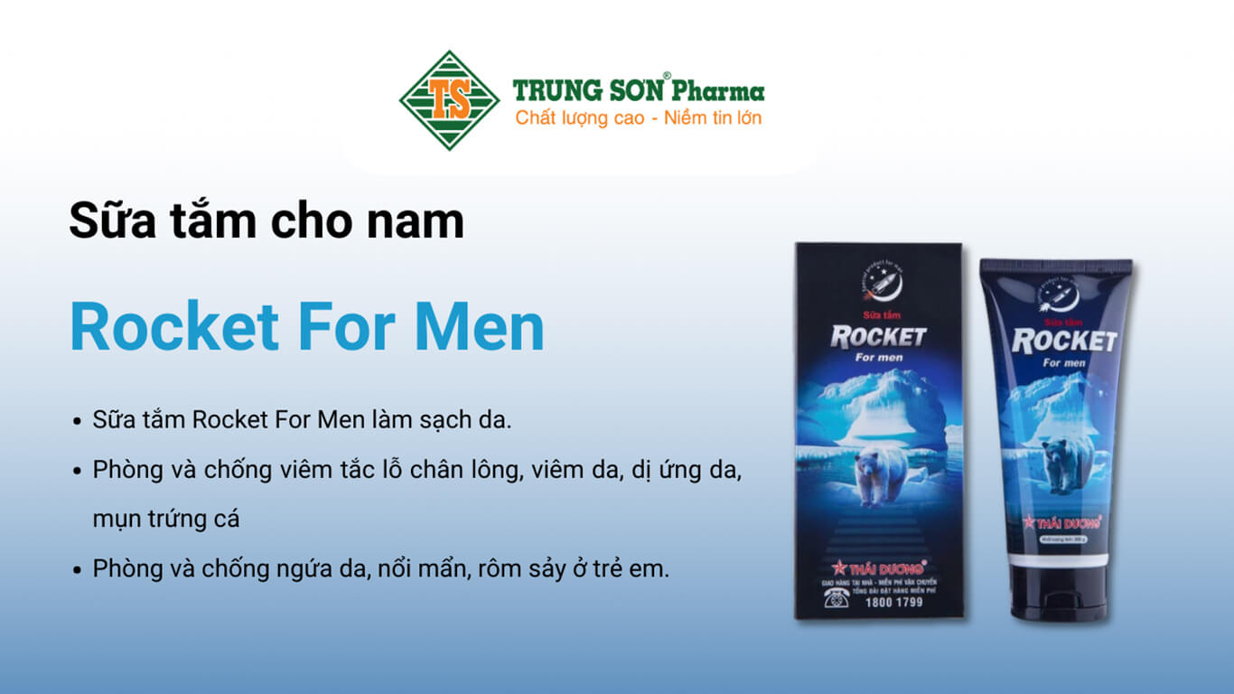 Trong cuộc sống hàng ngày, nam giới thường phải đối mặt với những vấn đề như mụn trứng cá, viêm da hay sự xuất hiện của các dị ứng trên da. Sữa tắm Rocket giúp ngăn ngừa tình trạng viêm tắc lỗ chân lông, mang lại cảm giác thoải mái và tự tin. Sản phẩm còn làm giảm ngứa, sần da và hạn chế sự phát triển của mụn ở các vùng nhạy cảm như lưng, ngực, vai và cánh tay.