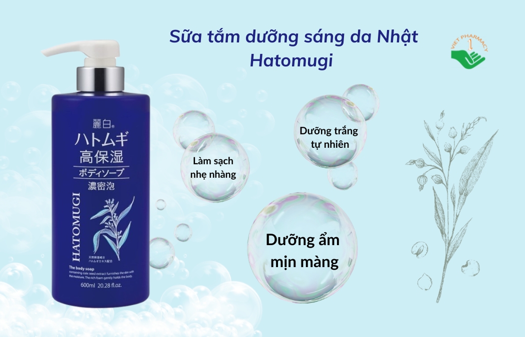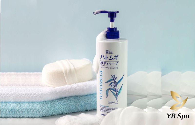Sữa tắm trắng da Nhật Bản nổi bật với các thành phần tự nhiên an toàn, giúp làm sạch và nuôi dưỡng làn da hiệu quả. Một trong những sản phẩm đáng chú ý phải kể đến là sữa tắm Hatomugi được chiết xuất từ đậu nành, chứa nhiều Isoflavone. Thành phần này không chỉ giúp làm sạch sâu mà còn cung cấp độ ẩm, hạn chế tình trạng khô ráp cho da.