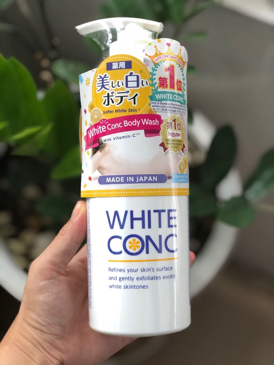 Ngoài Hatomugi, sữa tắm White Conc Body cũng rất được yêu thích. Sản phẩm này chứa vitamin C và khoáng chất giúp làm sáng da, mang lại làn da trắng mịn tự nhiên. Việc sử dụng sữa tắm White Conc còn giúp loại bỏ melanin – nguyên nhân chính gây ra nám, tàn nhang và đốm nâu.