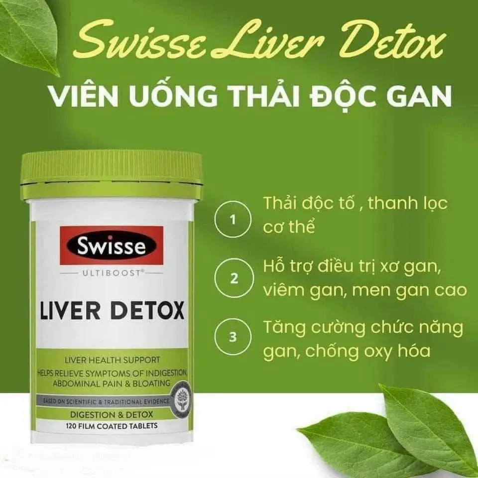 Viên uống Swisse Liver Detox 120 viên là một trong những lựa chọn phổ biến, giúp duy trì một lá gan khỏe mạnh. Hỗn hợp chiết xuất từ cây kế sữa kết hợp cùng các thành phần khác giúp cải thiện sự khó chịu trong bụng, đồng thời thanh lọc cơ thể một cách hiệu quả.