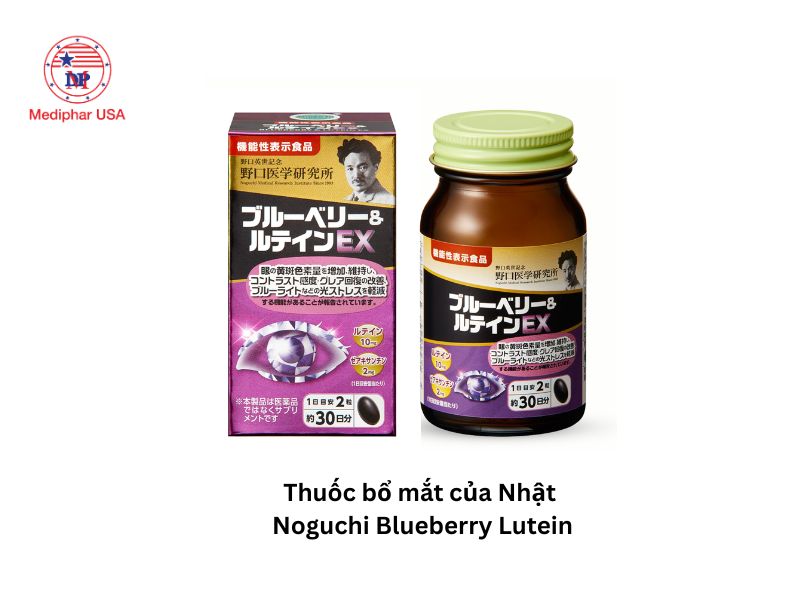 Ngoài ra, nếu bạn đang tìm kiếm những sản phẩm bổ mắt chứa các thành phần tự nhiên, thuốc bổ mắt của thương hiệu Noguchi với chiết xuất từ việt quất là một gợi ý thú vị. Giá cả hợp lý, chỉ khoảng 550.000đ cho một hộp 60 viên, sản phẩm này hỗ trợ cải thiện thị lực và chống lại khô mắt.