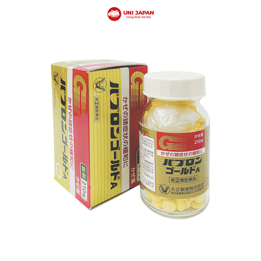 Thuốc cảm Taisho Pabron Gold A (210 viên) từ Nhật Bản là lựa chọn quen thuộc giúp giảm nhiều triệu chứng cảm lạnh: sổ mũi, nghẹt mũi, hắt hơi, đau họng, ho có đờm, ớn lạnh, sốt, nhức đầu và đau cơ, khớp. Công thức tổng hợp phù hợp khi bị cảm thông thường.