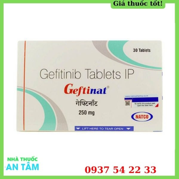 Thuốc được chỉ định để điều trị, kiểm soát và phòng ngừa ung thư phổi, đồng thời cũng hỗ trợ trong việc cải thiện các triệu chứng của bệnh. Sản phẩm được bào chế dưới dạng viên nén bao phim với hàm lượng 250mg, thuận tiện cho việc sử dụng hàng ngày. Geftinat được sản xuất bởi Natco Pharma – một thương hiệu uy tín từ Ấn Độ.