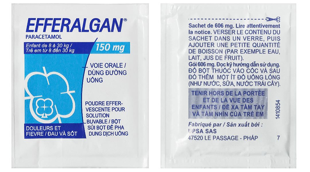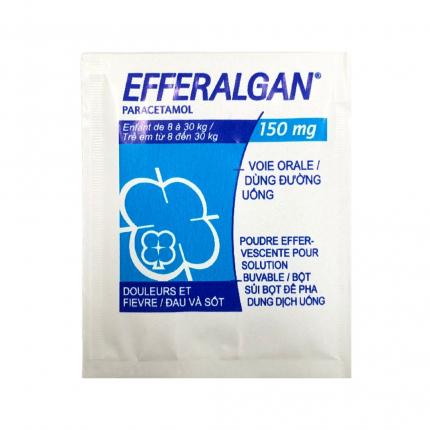 Efferalgan 150mg là loại bột sủi dành riêng cho trẻ em, được sản xuất bởi Công ty Dược phẩm Upsa Sas (Pháp). Thành phần chính trong sản phẩm này là paracetamol 150mg, một hoạt chất quen thuộc được biết đến với công dụng hạ sốt và giảm đau. Efferalgan mang đến hiệu quả nhanh chóng trong việc làm giảm các triệu chứng khó chịu như đau đầu, nhức răng, hay các cơn đau do cảm cúm.