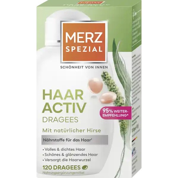 Viên uống Merz Spezial Haar-Activ Dragees chứa nhiều dưỡng chất thiết yếu như Biotin, kẽm, đồng và vitamin C. Nhờ vào sự kết hợp này, tóc không chỉ được nuôi dưỡng mà còn trở nên óng ả và đầy sức sống. Đồng thời, các chiết xuất từ hạt yến mạch, hạt kê và lúa mì giúp tăng cường độ đàn hồi cho tóc, bảo đảm cho mỗi sợi tóc đều khỏe mạnh.