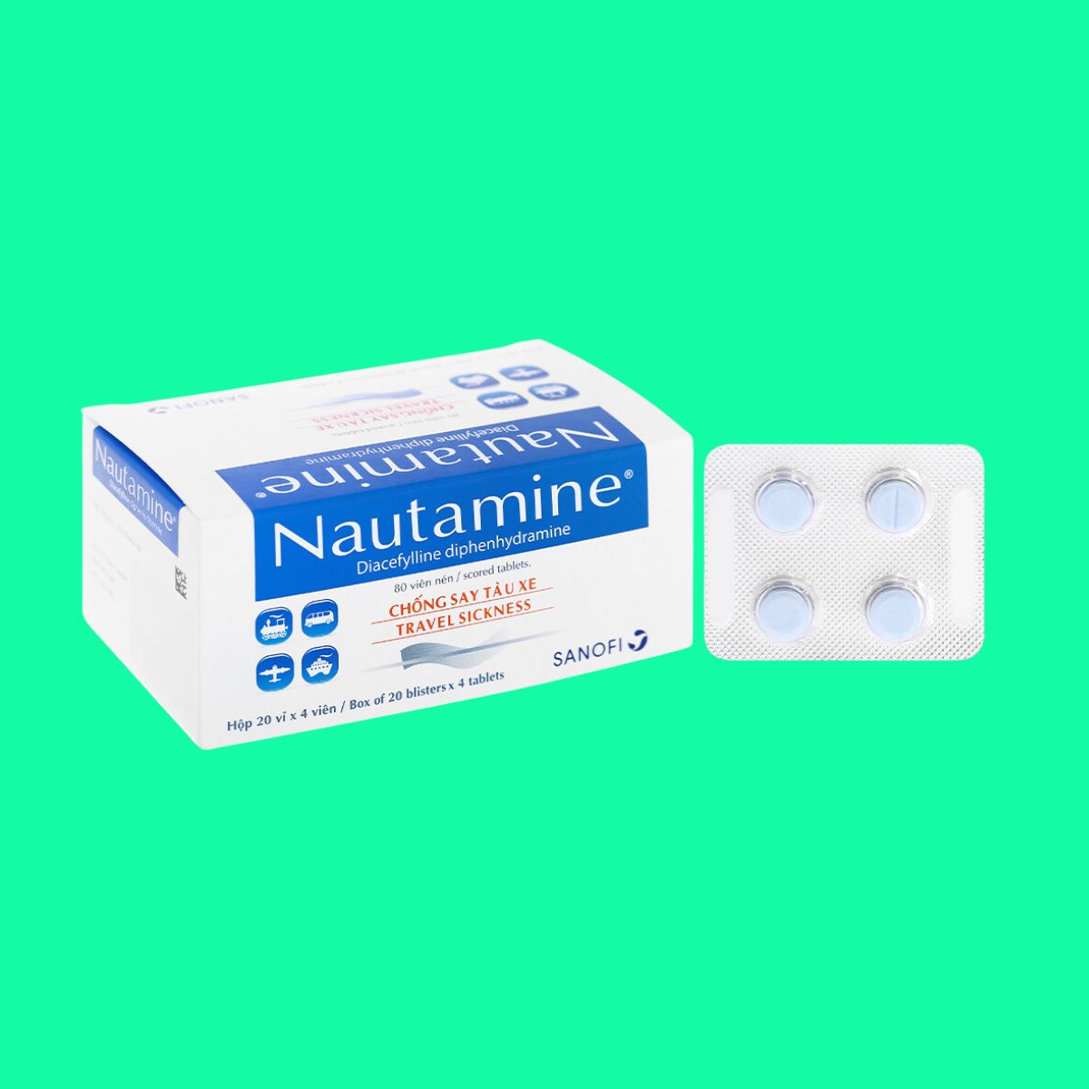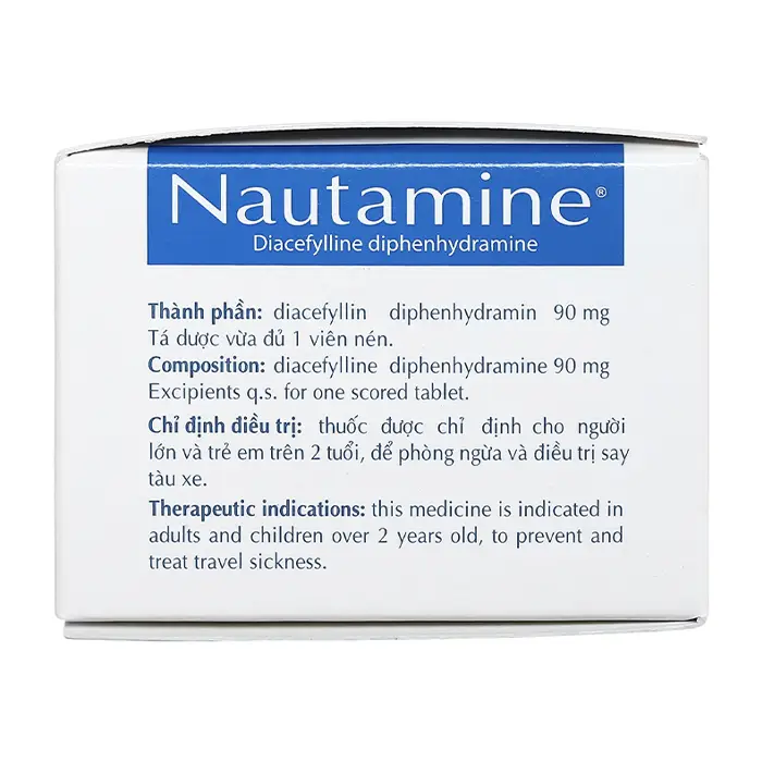 Thuốc say tàu xe Nautamine, được sản xuất bởi Công ty Cổ phần Sanofi Việt Nam, là sự lựa chọn hữu hiệu cho những ai thường bị say tàu xe. Thành phần chính của thuốc là Di(acefylline) diphenhydramine với hàm lượng 90mg, giúp ngăn ngừa và điều trị các triệu chứng khó chịu do say tàu xe gây ra.