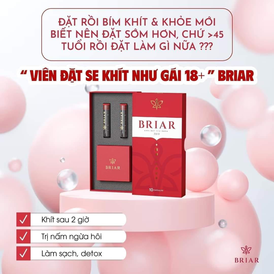 Viên đặt Briar là sản phẩm được nhiều chị em phụ nữ ưa chuộng nhờ vào những thành phần thiên nhiên, an toàn và ít gây kích ứng. Sản phẩm hỗ trợ se khít âm đạo trong khoảng thời gian 7 đến 10 ngày, giúp vùng kín được làm sạch và duy trì độ ẩm tự nhiên. Tuy nhiên, bạn cần lưu ý không nên sử dụng viên đặt này quá 14 ngày để tránh hiện tượng nhờn thuốc.