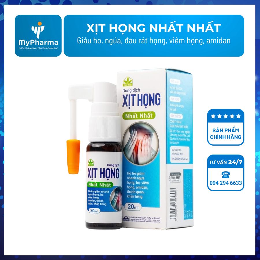 Xịt họng Nhất Nhất là sản phẩm đang rất được ưa chuộng trong việc hỗ trợ điều trị các triệu chứng như ngứa họng, ho, viêm họng hay khản tiếng. Với giá bán khoảng 90,000 đồng cho chai 20ml, sản phẩm này có tác dụng tại chỗ, giúp làm dịu nhanh chóng cảm giác khó chịu ở cổ họng.