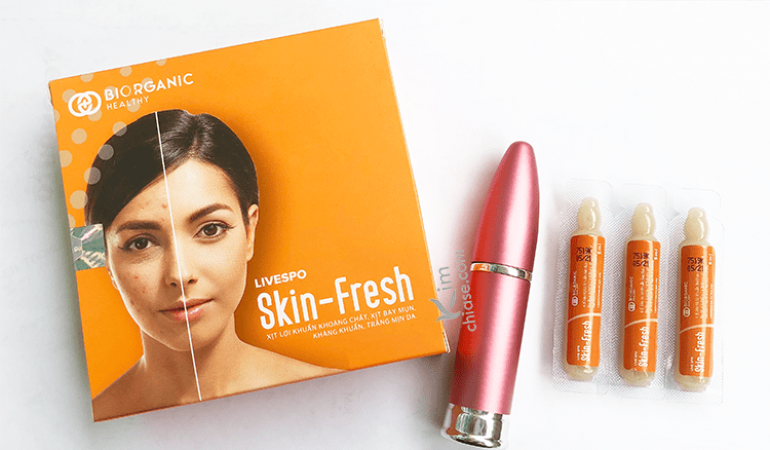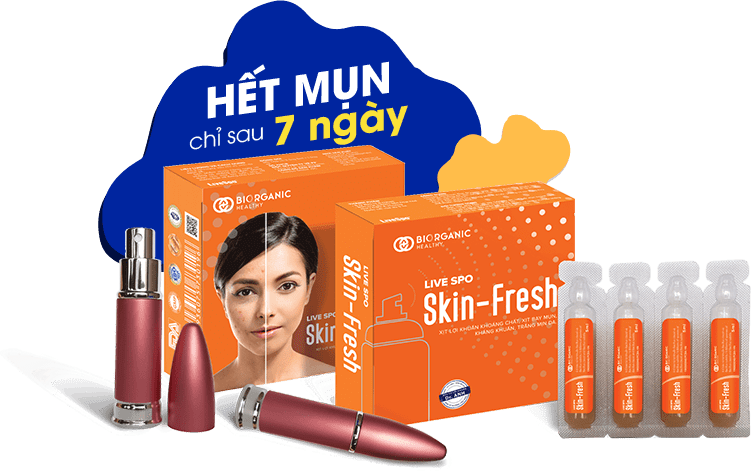 Sau khoảng 2-3 ngày sử dụng, những vết sưng đỏ sẽ giảm bớt, và chỉ sau 7-10 ngày, tình trạng mụn sẽ cải thiện rõ rệt. Skin Fresh được chiết xuất từ bào tử lợi khuẩn sống với 3 chủng khác nhau, giúp cạnh tranh với hại khuẩn và giảm viêm hiệu quả. Sản phẩm còn hỗ trợ làm sạch lỗ chân lông và kiểm soát bã nhờn, mang lại cho bạn làn da săn chắc và sáng bóng.